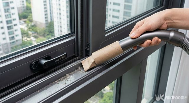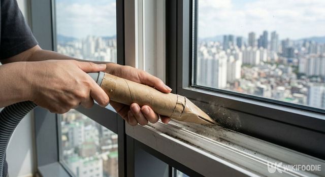 이럴 때 휴지심을 장착한 청소기를 사용하면, 가루가 주변으로 날리기 전에 빨아들일 수 있다. 휴지심 끝을 창틀 바닥에 밀착시킨 뒤 천천히 이동하면 틈새에 박혀 있던 가루들이 안쪽으로 빨려 들어가는 모습을 확인할 수 있다.