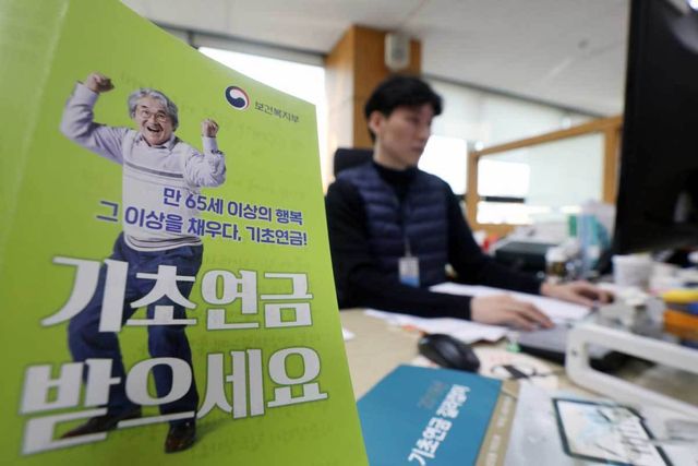 서울 서대문구 국민연금공단 서울북부지역본부에서 직원이 기초연금 관련 업무를 보고 있는 모습. / 뉴스1