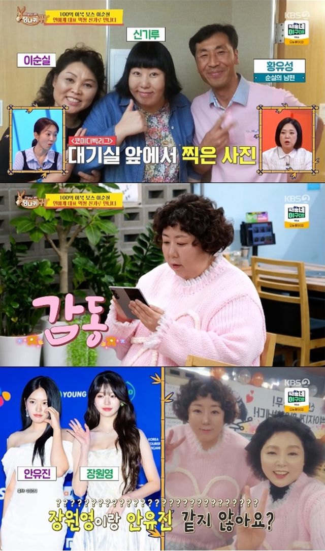 이순실과 신기루는 나란히 서서 사진도 찍었다. 신기루는 "장원영이랑 안유진 같지 않으냐"고 말했다.