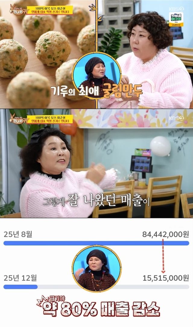 이순실은 식당을 오픈한 지 7개월이 됐는데 8월에는 매출이 1억을 찍고 했지만 겨울이 되니까 반토막 났다고 털어놨다.