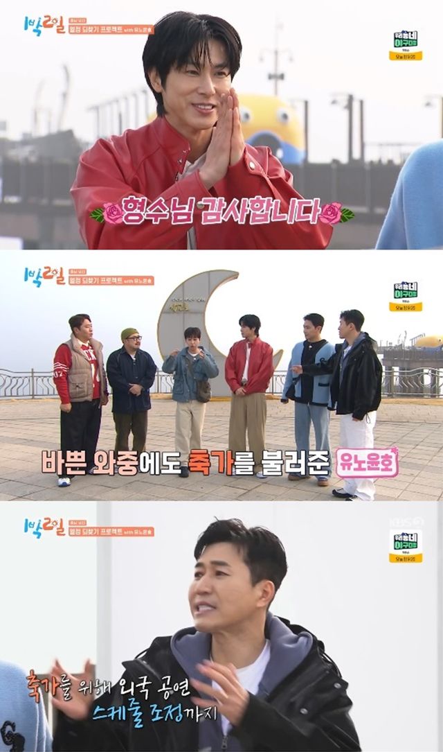 12일 방송된 KBS 2TV '1박 2일 시즌4'에서는 유노윤호가 김종민 결혼식 축가의 비하인드를 밝히는 모습이 전파를 탔다.