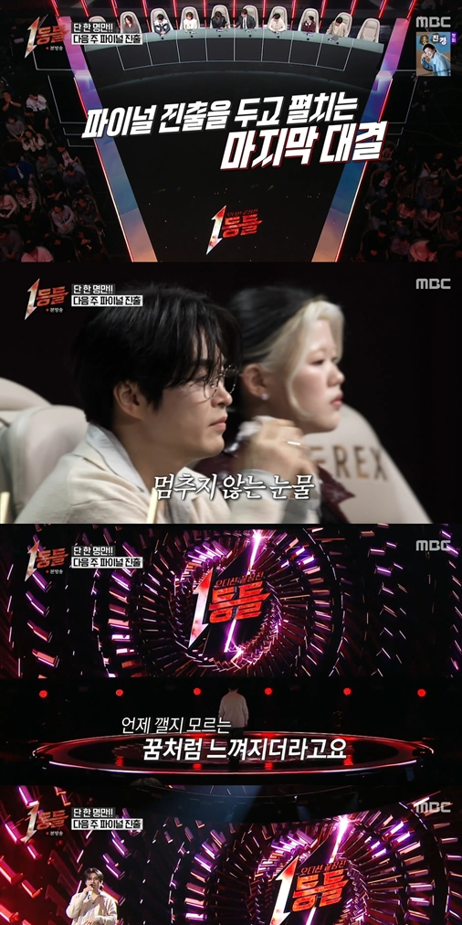12일 방송된 MBC 오디션 예능 ‘1등들’ 9회에서는 끝장전 마지막 티켓 한 장을 두고 최후의 줄세우기전이 펼쳐졌다. 이미 트로피를 손에 넣은 손승연, 이예준, 허각에게는 부전승 혜택이 걸린 무대였지만, 트로피가 없던 참가자들에게는 마지막 기회였다.