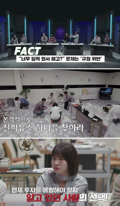 다음 날 아침에는 간밤에 벌어진 뉴스들 가운데 진짜를 찾는 기상 미션도 이어졌다. 강전애가 유일하게 정답을 맞히며 1000코인을 얻었지만, 장동민은 ‘페이커’에게 가장 방해되는 플레이어로 지목돼 결과가 무효 처리됐다.