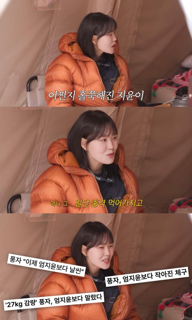 엄지윤은 "유튜브 나가고 나서 기사가 '풍자, 엄지윤보다 날씬해' 이랬다. 진짜 빼야겠다 생각을 하고 있었다"며 다이어트를 결심한 계기가 됐음을 밝혔다.