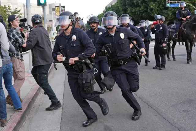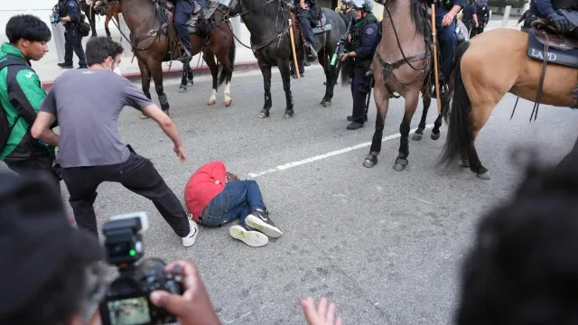 AP 통신에 따르면 이 날 LA에서의 시위는 대체로 평화로웠으나, 앞서 언급한 다운타운의 구금센터 앞에서 경찰과 시위대 간의 충돌이 있었습니다.