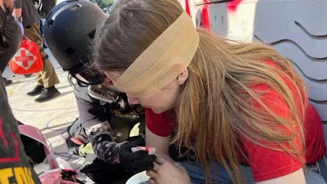 시위 현장에 상주하던 간호사의 도움 덕분에 그는 병원으로 즉시 이송될 수 있었습니다.