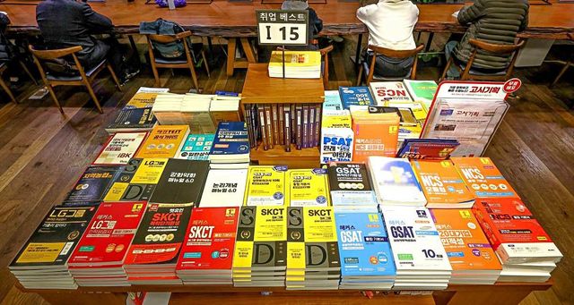 취업 서적 코너에 북적이는 모습. 기사 내용 토대로 AI툴 활용해 제작한 자료사진.