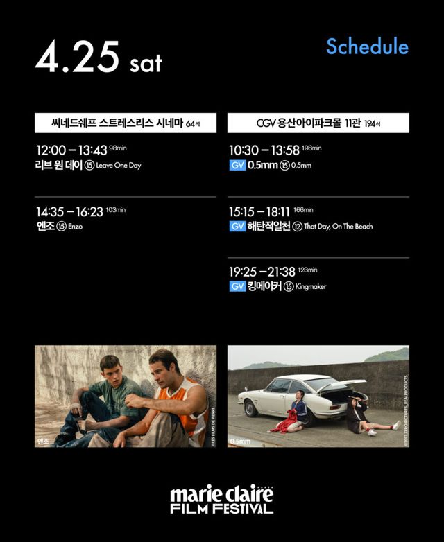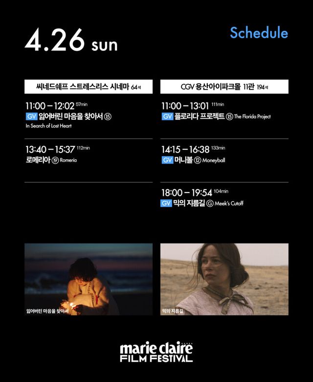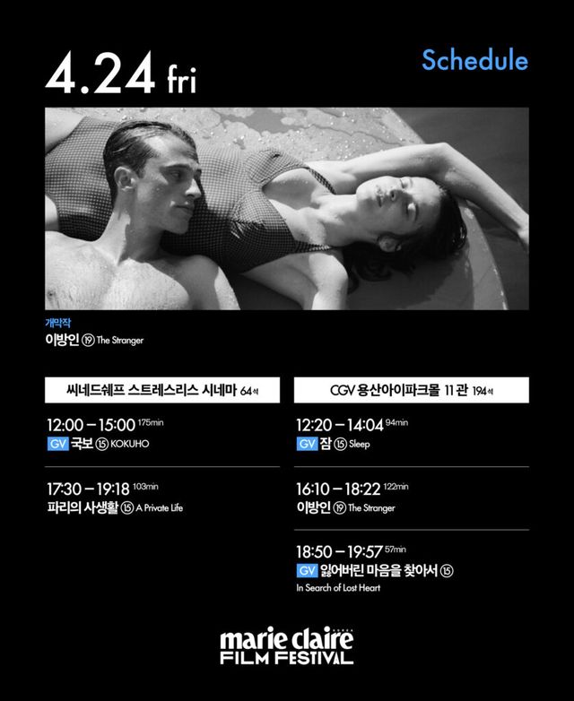 4월 24일부터 26일까지 열리는 ‘제13회 마리끌레르 영화제‘의 상영시간표를 공개합니다.