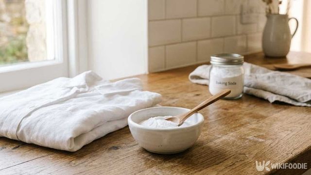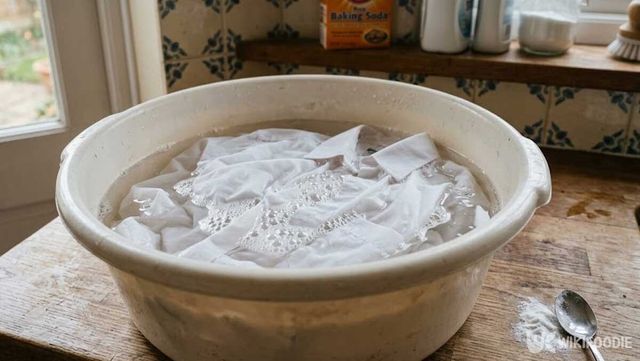 황변 제거에서 가장 중요한 과정은 본 세탁 전에 옷을 물에 담가두는 것이다. 30~40도 온수 한 대야에 베이킹소다 3큰술을 넣고 완전히 녹인 뒤, 흰옷을 1시간가량 담가두면 된다. 이 과정에서 오랫동안 굳어 있던 오염물이 느슨해지고 섬유 조직이 부드러워지면서 이후 세탁 효율이 크게 달라진다.