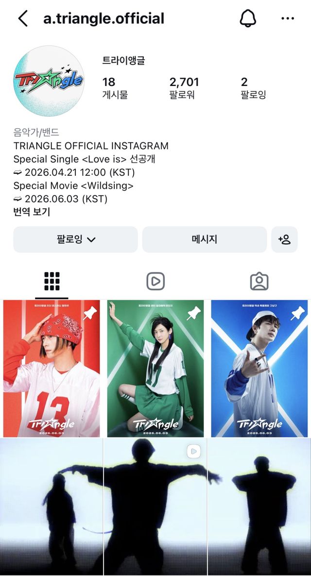 배급사 롯데엔터테인먼트 측은 최근 영화 ‘와일드 씽’의 캐릭터 포스터와 콘셉트 예고편을 공개하고, 극중 등장하는 혼성 댄스 그룹 ‘트라이앵글’의 공식 SNS 계정과 나무위키 페이지를 오픈했다.
