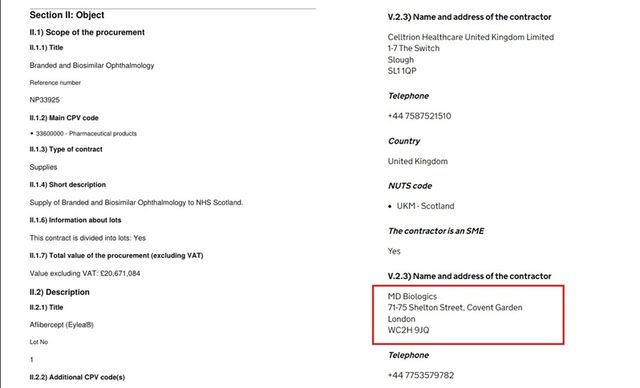 계약 상대방은 공개되지 않았지만 MD바이오로직스가 관련 조달 입찰에 참여한 업체로 확인되면서 양자 간 연관 가능성이 제기되고 있다. 공급 지역에 영국과 함께 아일랜드가 포함된 가운데 MD바이오로직스 개인정보 처리 방침 문서에서 아일랜드 법인(MDBiologics Ireland Ltd)이 확인된다는 점도 연관성에 대한 추정에 힘을 보태고 있다.