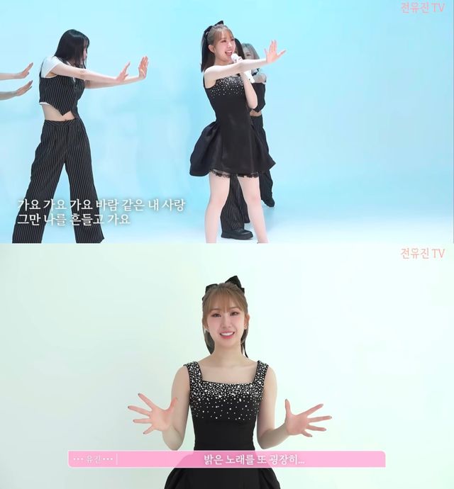 영상에는 자켓 촬영 현장의 전유진 모습이 담겼다. 블랙 원피스를 입고 촬영에 임한 전유진은 다양한 포즈를 시도했으며, 중간에 어색한 모습을 보이기도 했지만 이후 집중해 촬영을 이어갔다. 또한 직접 모니터링을 하며 콘셉트를 확인하고, 요청에 따라 ‘가요 가요’ 안무를 짧게 선보였다.