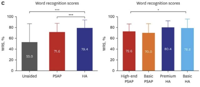 가격이 높은 PSAP가 성능을 보완할 수 있을 것이라는 기대도 있었지만 연구 결과는 이를 뒷받침하지 못했다. 16채널 고급형 PSAP와 5채널 기본형 PSAP 간에는 청력 성능과 만족도에서 유의미한 차이가 나타나지 않았다. 반면 6~8채널 수준의 기본형 보청기조차 고주파 이득과 어음 인지 능력에서 PSAP보다 우수한 성능을 보였다.