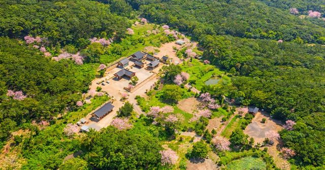 경북 경산에는 고즈넉한 산사와 화려한 겹벚꽃이 어우러져 절경을 이루는 숨은 명소가 있다.