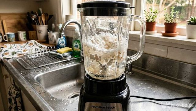 이때 믹서기 용기에 따뜻한 물과 껍데기, 소량의 세제를 함께 넣고 20~30초 작동시키면 껍데기 조각이 회전하면서 칼날 아래, 뒷면, 고정 부위 구석구석을 순환하며 지나간다. 따뜻한 물이 기름기를 풀어주고 껍데기의 마찰이 굳은 잔여물을 밀어낸다.