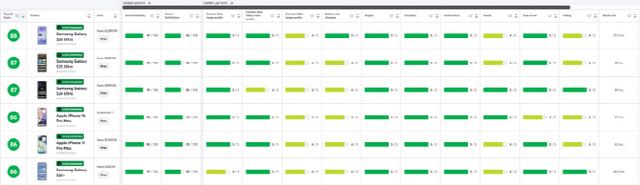갤럭시 시리즈의 강세는 전체 순위에서도 두드러졌다. 전작인 갤럭시 S25 울트라와 갤럭시 S24 울트라가 각각 87점을 받으며 나란히 공동 2위에 올라 갤럭시 라인업이 상위권을 휩쓸었다. 반면 경쟁사인 애플의 ‘아이폰 17 프로 맥스’와 ‘아이폰 16 프로 맥스’는 86점에 머물며 ‘갤럭시 S25 플러스’와 함께 공동 4위에 이름을 올렸다.