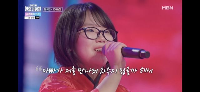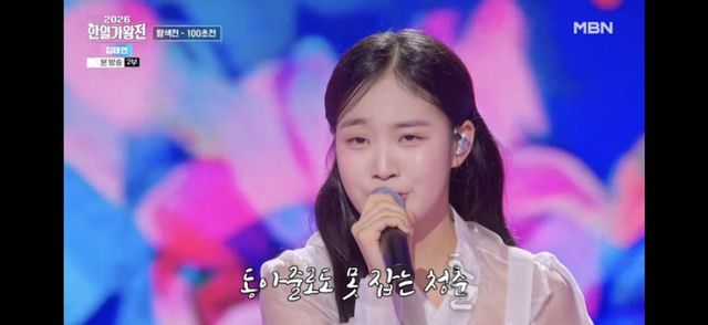 ‘중2 대결’도 뜨거웠다. 한국의 ‘아기 호랑이’ 김태연이 구성진 ‘가지마’로 617점을 받은 가운데, 일본 막내 아라카와 카렌은 이혼 후 연락이 닿지 않는 아빠를 그리워하며 ‘만나고 싶어서 지금’을 불러 현장을 눈물바다로 만들었다.