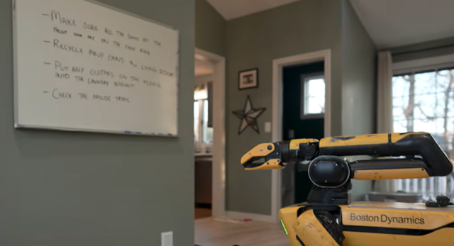 이후 스팟은 명령에 맞춰 현관 앞에 널브러진 신발을 신발장에 정리하고, 빈 캔을 집어 쓰레기통에 넣는다. 또 바닥에 있는 옷들을 집어 세탁 바구니에 넣고, 가구 아래 쥐덫의 상태를 확인하는 등 목록에 있던 활동을 순차적으로 수행한다.