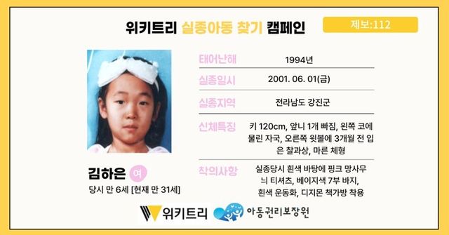 실종아동 김하은 / 위키트리, 사진제공: 아동권리보장원