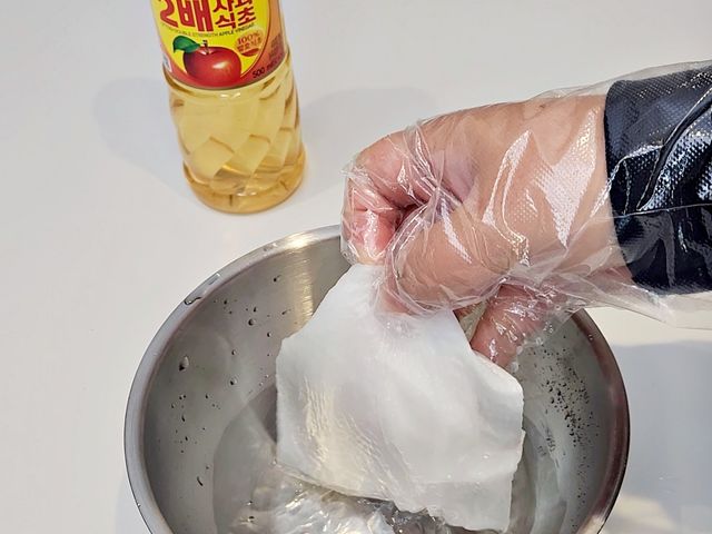 물이 뚝뚝 떨어지지 않도록 가볍게 짜주세요.