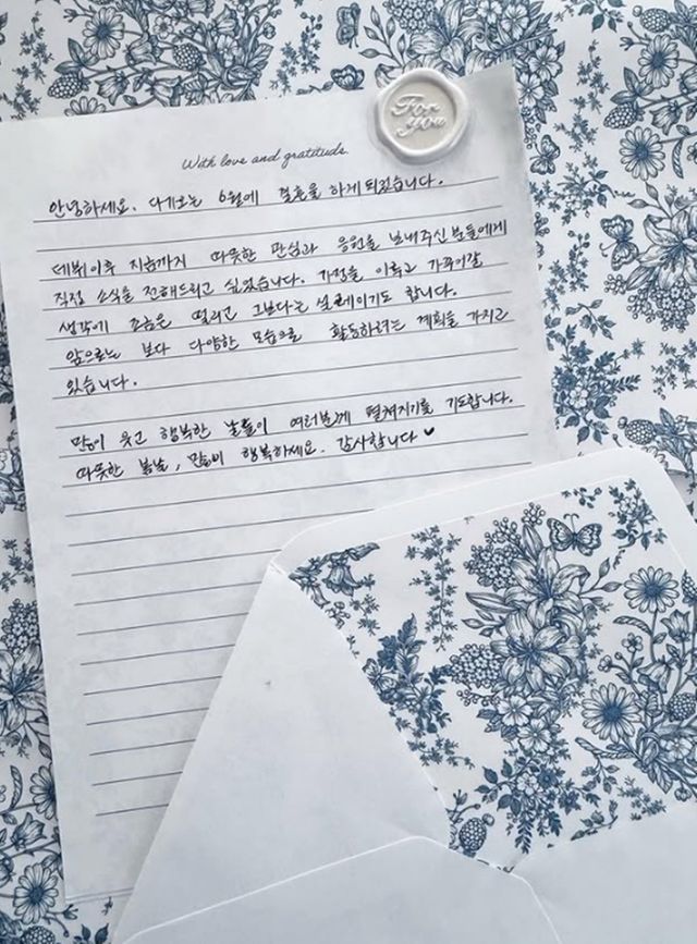 이어 “가정을 이루고 가꾸어 갈 생각에 조금은 떨리고, 그보다는 설레이기도 합니다. 앞으로는 보다 다양한 모습으로 활동하려는 계획을 가지고 있습니다”라고 덧붙였다.