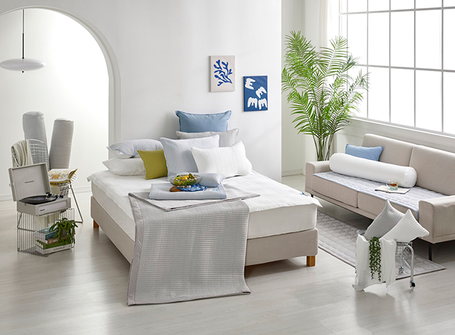패션을 넘어 리빙 영역에서도 변화가 이어지고 있다. 침구 시장에서는 ‘냉감’ 기능을 앞세운 제품 경쟁이 본격화되는 분위기다. 토털슬립케어 브랜드 이브자리는 인견 소재를 적용한 여름 침구를 출시했다. 인견은 목재 펄프에서 추출한 식물성 섬유로, 차가운 촉감과 우수한 통기성을 갖춘 여름 소재다. 여기에 자일리톨 성분을 활용한 특수 가공을 더해 냉감 효과와 항균 기능을 강화했다.