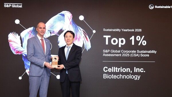 셀트리온은 글로벌 신용평가기관 S&P 글로벌이 발표한 '기업지속가능성평가(CSA)'에서 생명공학 부문 상위 1% 기업으로 선정됐다고 15일 밝혔다. 지난해 상위 5%에 진입한 지 불과 1년 만에 거둔 쾌거로, 국내 제약·바이오 기업 중에서는 셀트리온이 유일하게 이 명단에 포함됐다.