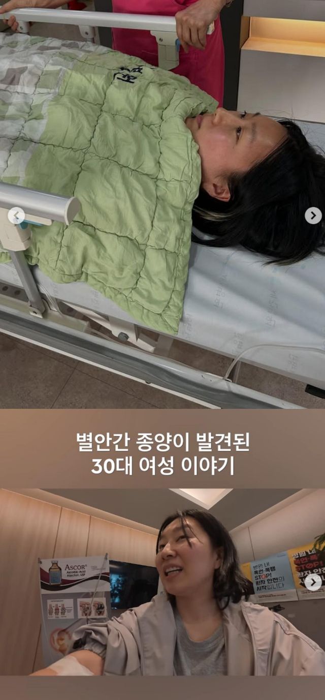 엄은향은 지난 13일 이유 모를 다리 통증으로 인해 혈관종을 발견했다며 입원 사진을 공개한 바 있다.