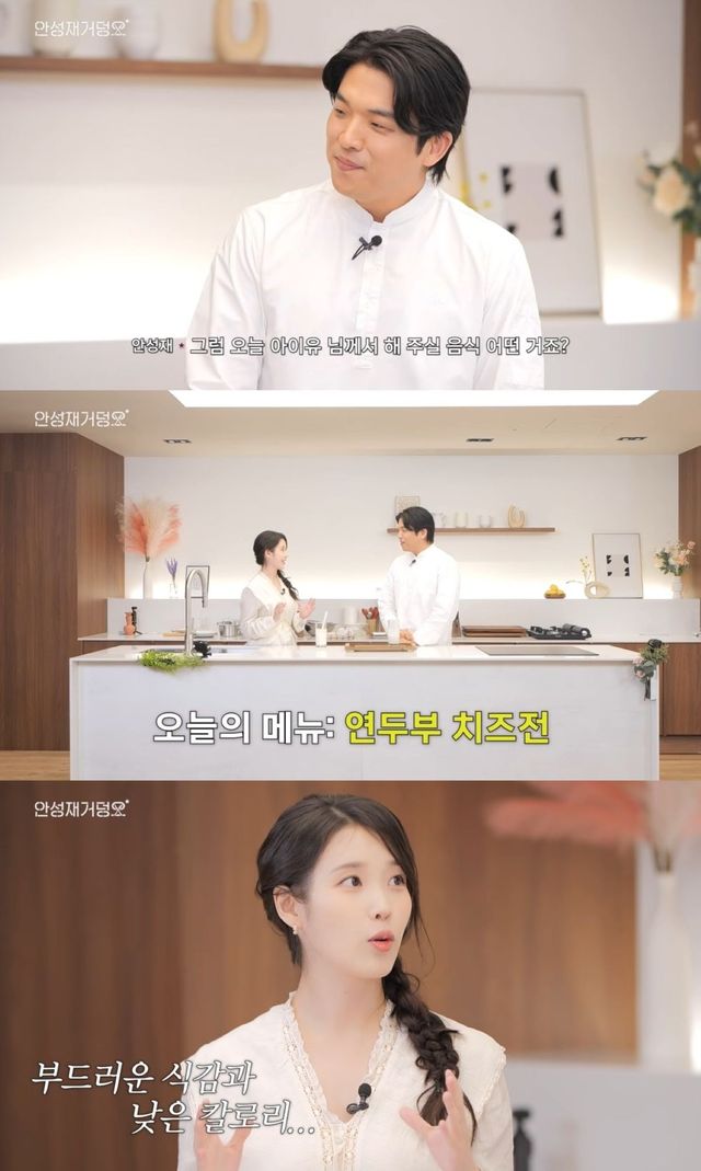 15일 '셰프 안성재' 유튜브 채널에는 '아이유는 야식도 이렇게 먹지은. 늦은 밤 부담 없이 먹기 좋은 아이유 표 야식 레시피 공개'라는 제목의 '안성재거덩요' 영상이 게재됐다.