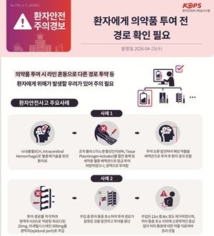 한편 이번 환자안전 주의경보의 보다 자세한 내용과 사례는 환자안전 보고학습시스템 누리집에서 확인할 수 있다.