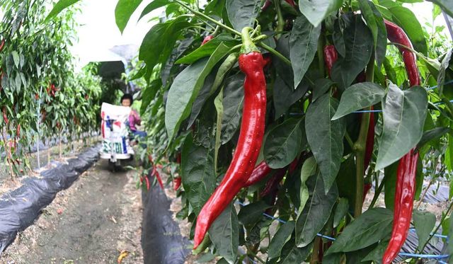 경남 거창군 위천면 무월마을 앞 고추밭에서 한 농민이 올여름 무더위를 이기고 빨갛게 잘 익은 고추를 수확하고 있다. / 뉴스1