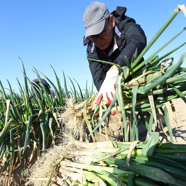 전남 신안군 임자도에서 농부들이 대파를 수확하고 있다. / 뉴스1