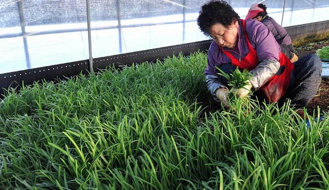 울산시 북구 상안동의 한 시설하우스에서 농민들이 산전부추를 수확하느라 바쁜 손길을 놀리고 있다. / 뉴스1