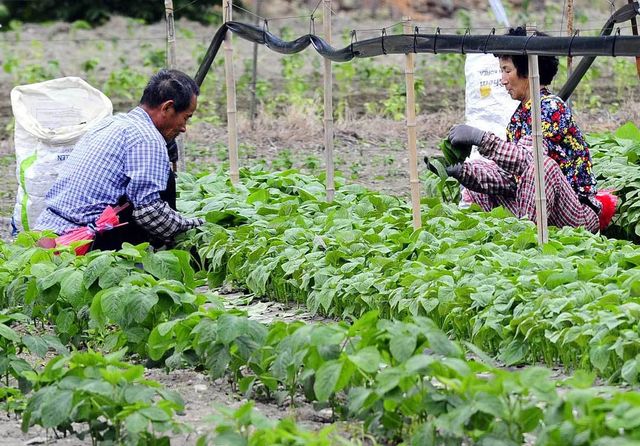 경남 밀양시 산외면 노지에서 노부부가 깻잎을 수확하고 있다. / 뉴스1