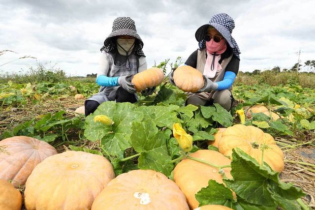 전북 완주군 농촌진흥청 국립원예특작과학원 시험 재배지에서 직원들이 연구용으로 재배한 늙은 호박을 수확하고 있다. / 뉴스1