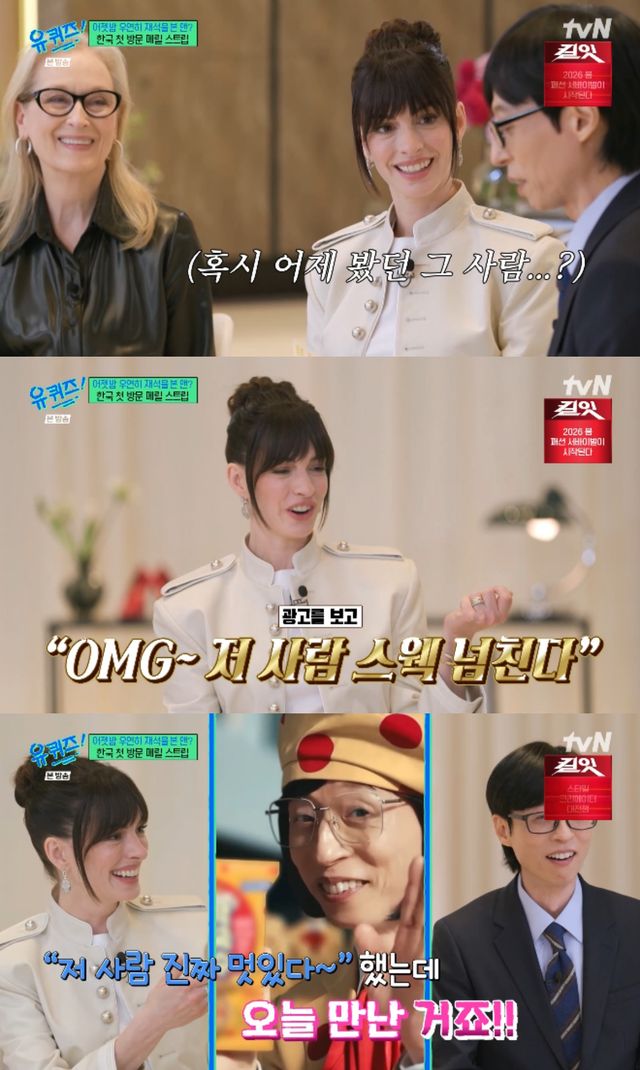 15일 방송된 tvN 예능 프로그램 '유 퀴즈 온 더 블럭'에서는 영화 '악마는 프라다를 입는다2'로 20년만에 돌아온 할리우드 배우 메릴 스트립, 앤 해서웨이가 출연해 이야기를 나눴다.