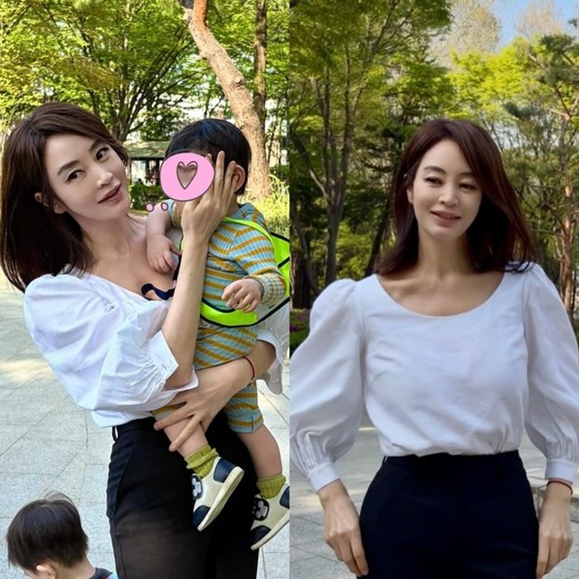 공개된 사진 속 김혜수는 나무가 우거진 산책로에서 아이를 안고 눈을 맞추거나 꼭 끌어안는 등 다정한 모습을 보이고 있다. 편안한 표정과 자연스러운 스킨십이 어우러지며 여유로운 일상이 전해진다.