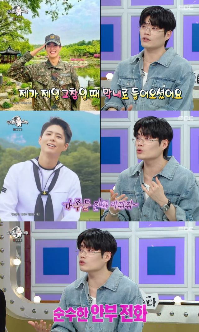 이날 방송에서 윙은 "해군에서 전역을 2주 앞둔 시점에 밴드 피아노 병으로 보검이 형이 들어왔다"고 박보검을 언급했다.