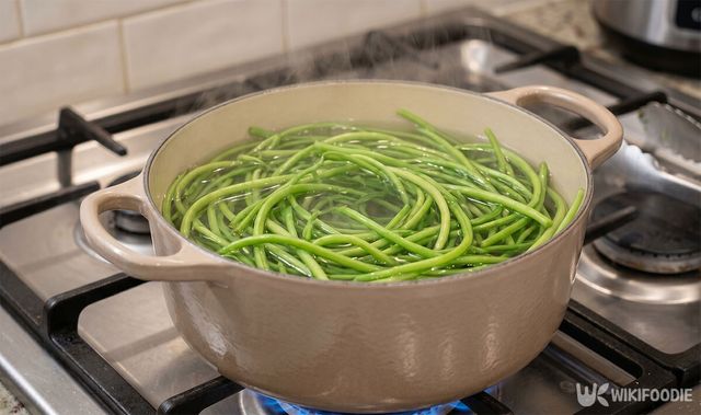 끓는 물에 넣고 줄기가 부드럽게 휘어질 때까지 데친다.