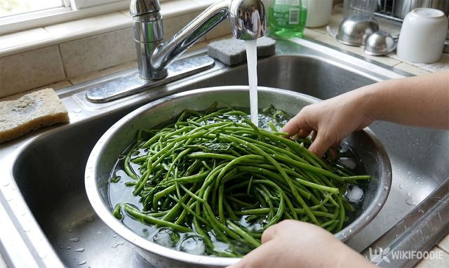 이 과정을 거치면 줄기 조직이 연해져서 양념이 속까지 훨씬 잘 스며들고, 씹을 때 질기지 않고 쫄깃한 식감을 낸다. 다만 물에 너무 오래 담가두면 수분이 과하게 흡수되어 줄기 고유의 맛이 옅어질 수 있으니 주의해야 한다.