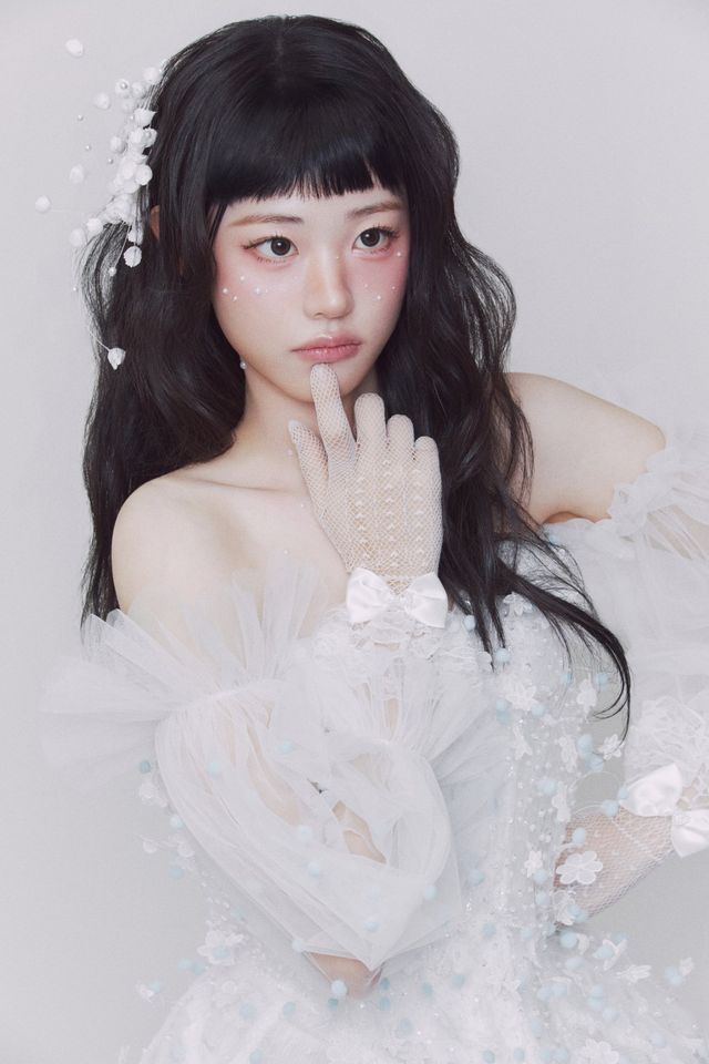 공개된 사진 속 히나는 처피뱅 헤어스타일로 변신해 러블리한 매력을 드러냈다. 단상에 몸을 기댄 포즈와 뾰로통한 표정을 더해 인형 같은 비주얼을 강조했다. 또한 영문 이름이 적힌 스톨과 리본 액세서리를 매치해 키치하면서도 시크한 분위기를 더했다.