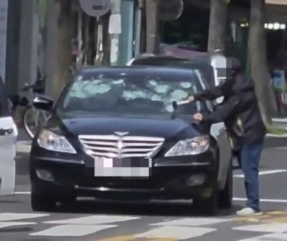 이날 SNS에는 A씨가 “내려”라고 소리치며 검은 차량 앞유리를 고무망치로 수차례 내려치는 영상이 올라오기도 했다.