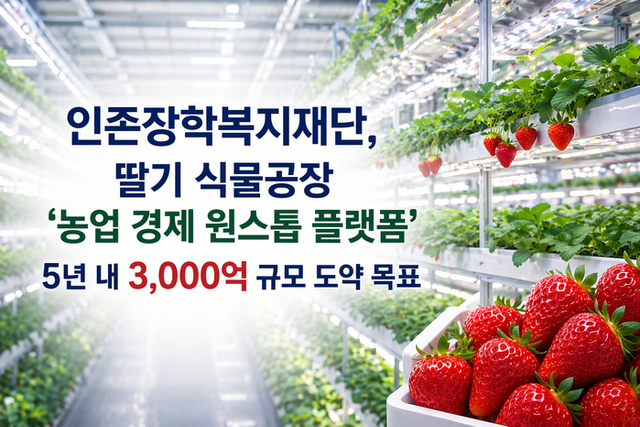 [파이낸셜경제=김지훈 기자] 인존장학복지재단(이사장 김정미, 설립자 전 전북 도의원 김택성)이 팬텀엑셀러레이터(대표 엑셀러레이터 김세훈, 파트너 엑셀러레이터 변호사 이기영)와 함께 딸기 수직 식물공장을 중심으로 한 ‘농업 경제 원스톱 플랫폼’ 구축에 나서며, 기술연구소 설립과 농업법인 출범, 스마트팜 핵심 기술 M&A까지 연계한 통합 구조를 기반으로 향후 5년 내 3,000억 원 규모로의 도약을 목표로 본격적인 사업 확장에 돌입했다.