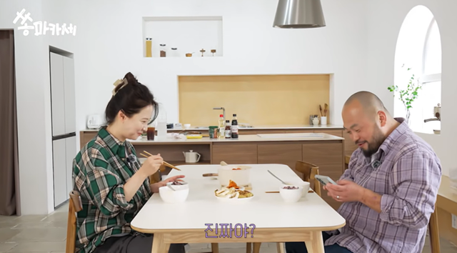 영상에서 송지효는 평소 절친한 사이인 셰프 데이비드 리를 초대, 직접 요리를 하며 식사를 함께 했다.