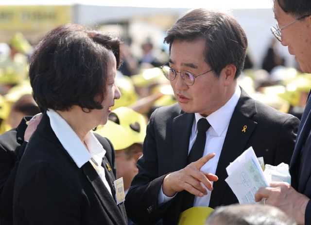 16일 안산 화랑유원지에서 열린 세월호 참사 12주기 기억식에 참석한 김 지사는 자신의 사회관계망서비스(SNS)를 통해 “지난 기억식마다 대통령의 빈자리를 보며 안타까웠다. 작년 이 자리에서 ‘내년은 달라야 한다’고 호소했던 이유이기도 하다”고 강조했다.