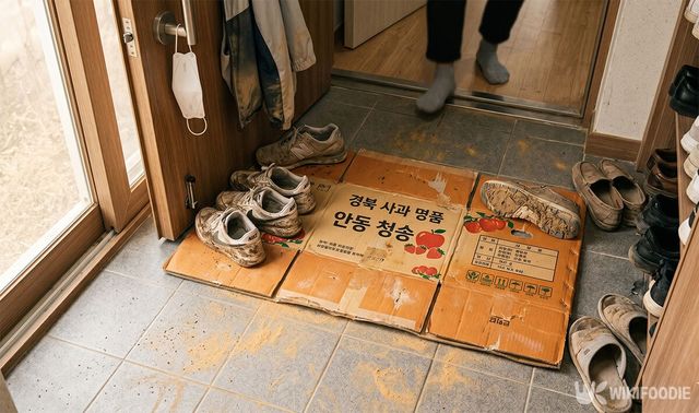 황사와 미세먼지가 기승을 부리는 봄날에는 외출 후 돌아온 신발 바닥에 온갖 이물질이 묻어 있기 마련이다. 현관 바닥에 그냥 신발을 벗어두면 미세한 흙먼지가 집안으로 유입되기 쉬운데, 이때 과일 박스를 현관 한쪽에 깔아두면 훌륭한 '먼지 포획 매트'가 된다.