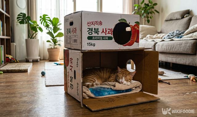고양이를 키우는 집이라면 과일 박스는 그 어떤 비싼 장난감보다 반가운 선물이다. 고양이는 좁고 사방이 막힌 곳에서 마음의 안정을 찾는 본능이 있다. 또한 골판지의 거친 단면은 고양이가 발톱을 긁어 정리하기에 딱 알맞은 질감을 가지고 있다. 상자 두세 개를 이어 붙여 구멍을 내주면 고양이가 오르내리며 노는 멋진 놀이터가 완성된다.