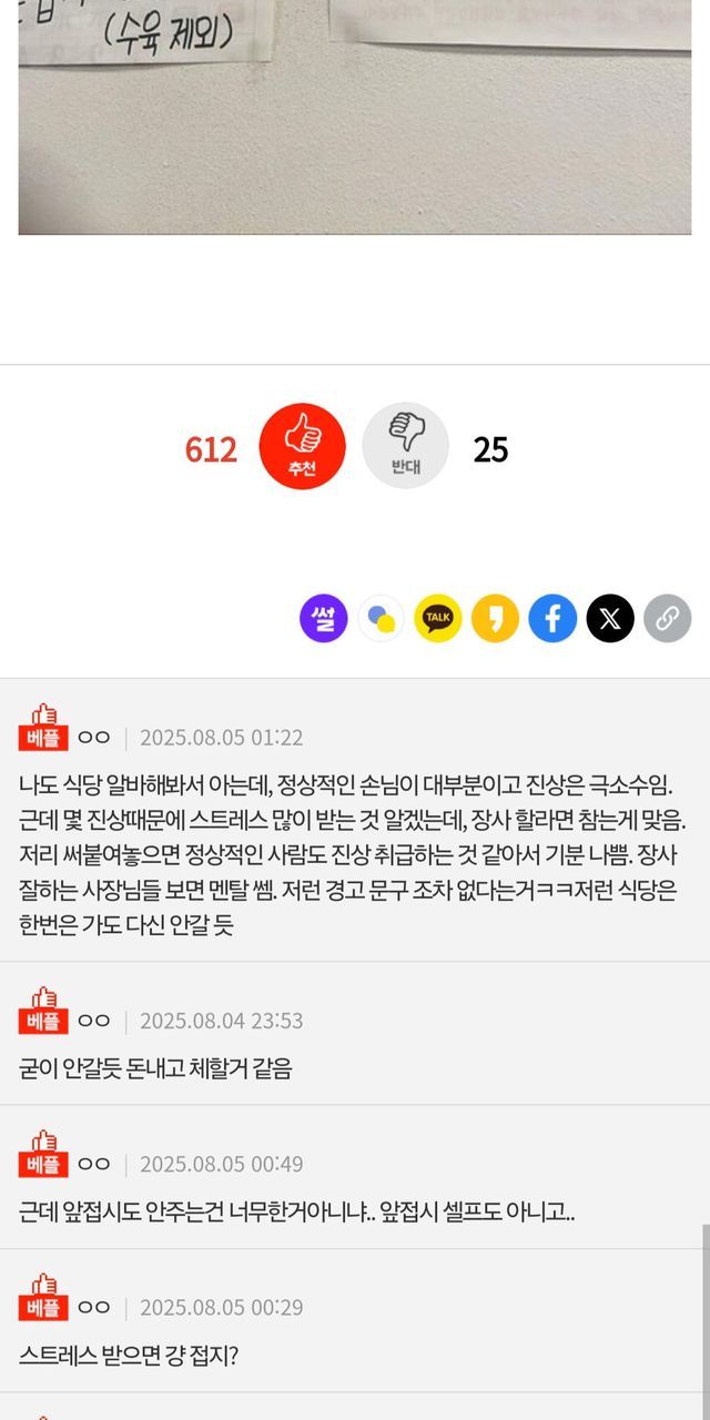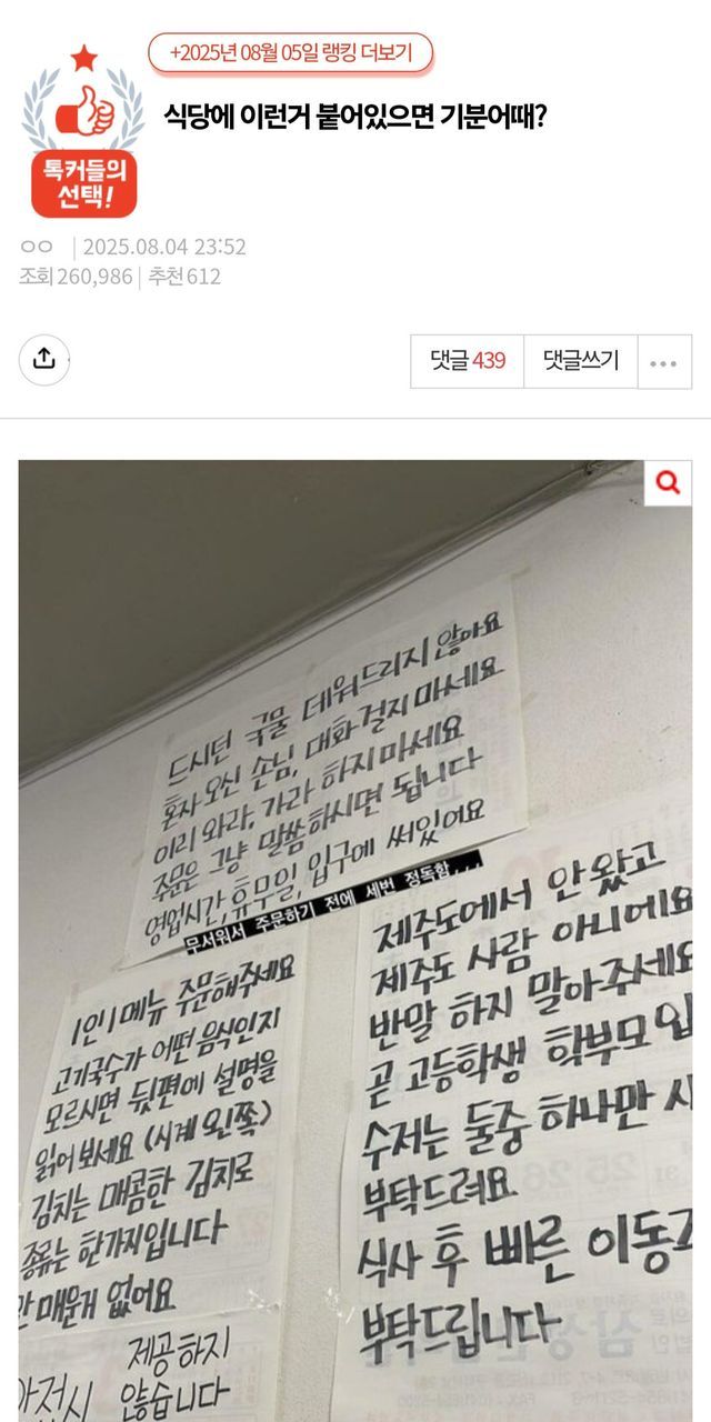 식당에 이런 거 붙어있으면 기분 어 때?