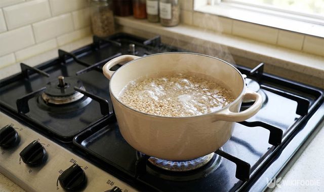 보리쌀 50g을 씻어 물 500ml를 넣고 끓인 뒤 약불에서 10분 더 끓여 푹 퍼지게 만든다.