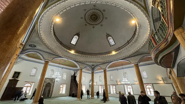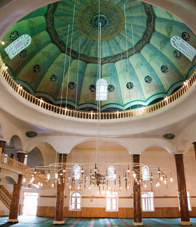 부르사의 800년 된 초룸 울루 자미는 원래 돔 내부에 청자색 벽면에 꽃 무늬 아랍 칼리그래피가 덧그려진 화려한 형태였으나